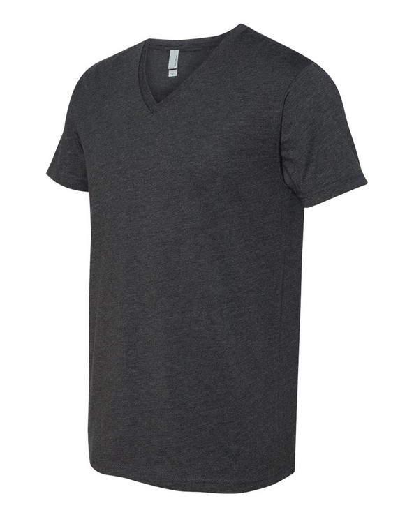 The Next Level 6240 is Fitted CVC V T-shirt made of 60/40 combed ringspun cotton/polyester, 32 singles. It has a tear away label and a set-in 1x1 baby rib collar.